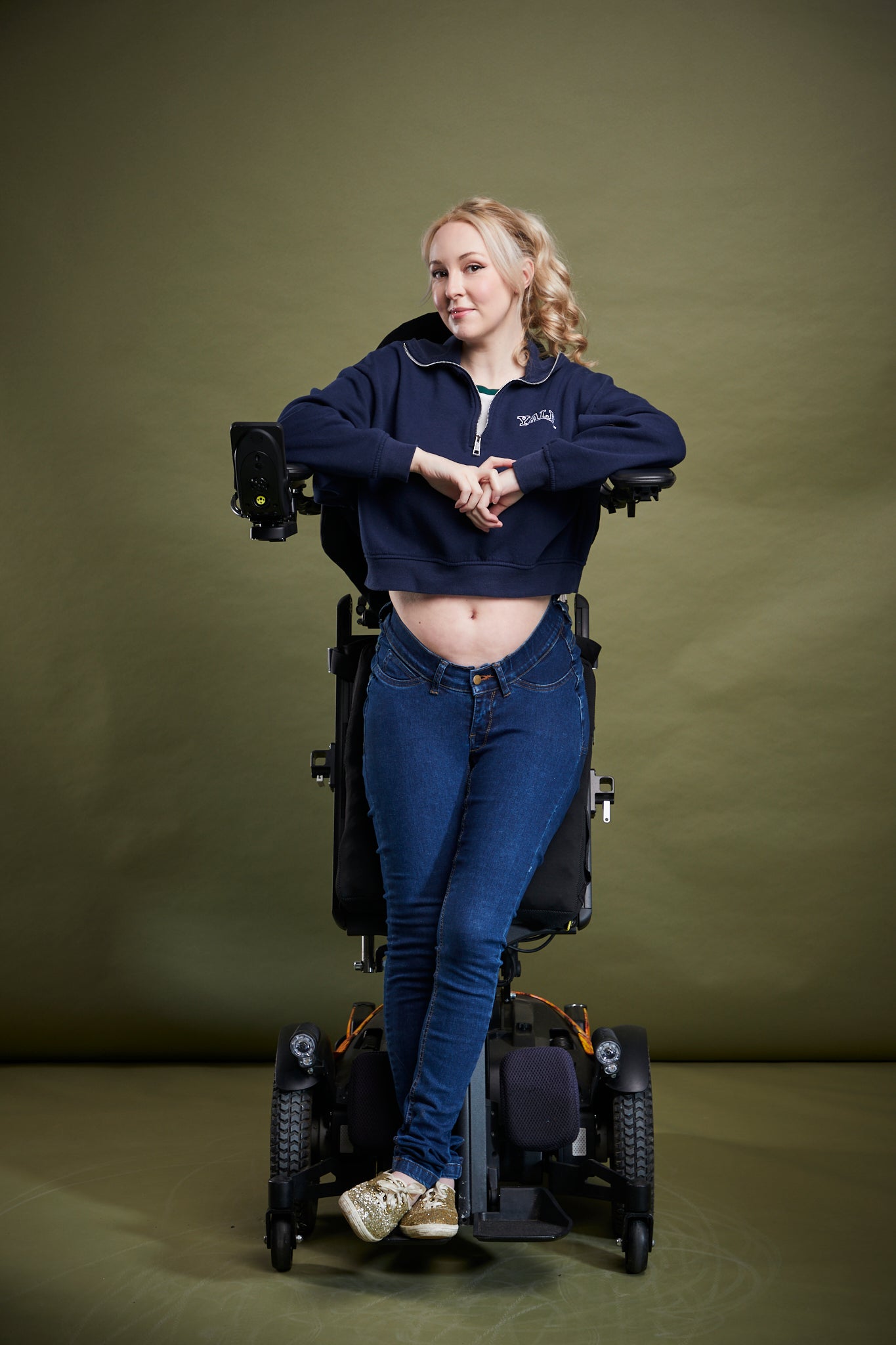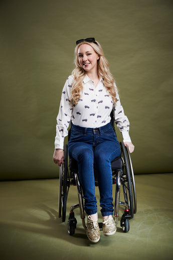 We asked our gorgeous model Charlotte to show you the fit on her standing chair so you can see how the front is deigned low to avoid excess material at the tummy.